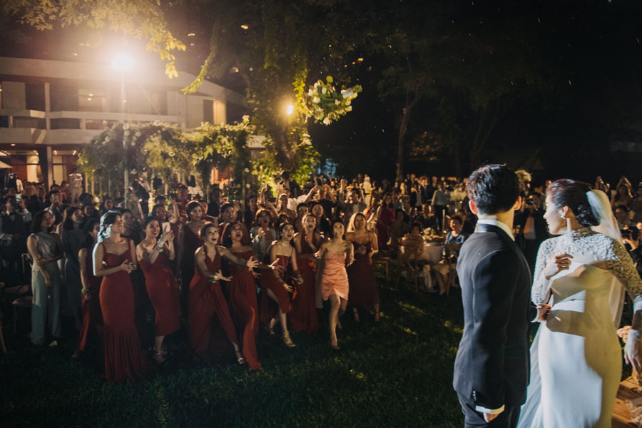 ในงานได้รับการตกแต่งในธีมโรงนาแบบฝรั่งที่ดูน่ารักอบอุ่น เลือกใช้สีขาวและสีเขียวของดอกไม้และใบไม้เพื่อให้ได้บรรยากาศที่ดูสบายๆ ให้ความรู้สึกเหมือนอยู่ในสวนหลังบ้าน โมเมนต์ที่เจ้าสาวปรากฏตัวในชุดสีขาวที่ดูอ่อนหวาน แต่แฝงความโก้ในสวนสีเขียวชอุ่มพร้อมกับเจ้าบ่าวในชุดสูทสุดเนี้ยบนั้นก็ให้ความรู้สึกที่สดชื่นมากๆ ทำให้รู้สึกเหมือน การรวมตัวของครอบครัวและเพื่อนสนิทกันที่สวนหลังบ้านได้มีความสุขและรับประทานอาหารร่วมกัน เรียกว่าเป็นงานที่ สวยงามแก่สายตาและยังอบอุ่นแก่หัวใจจริงๆ