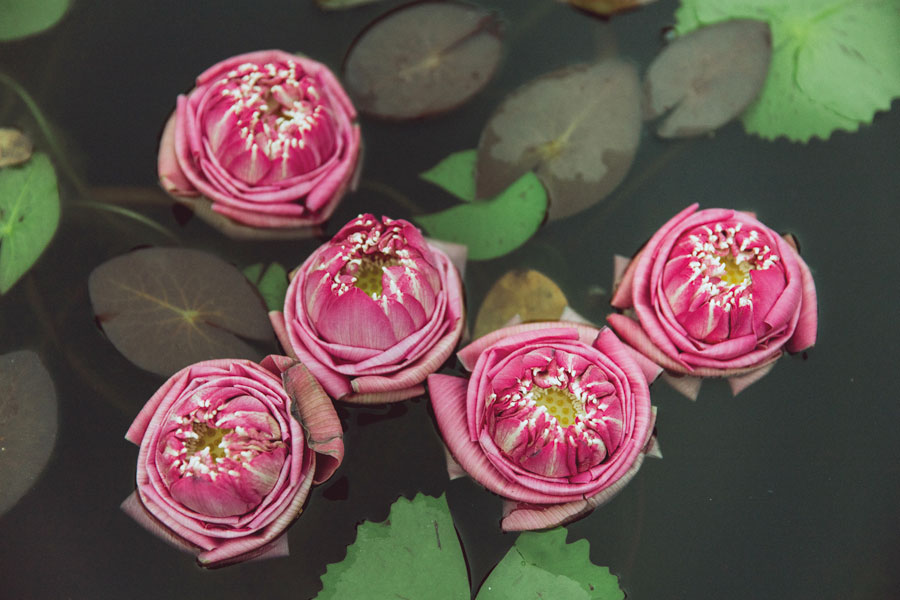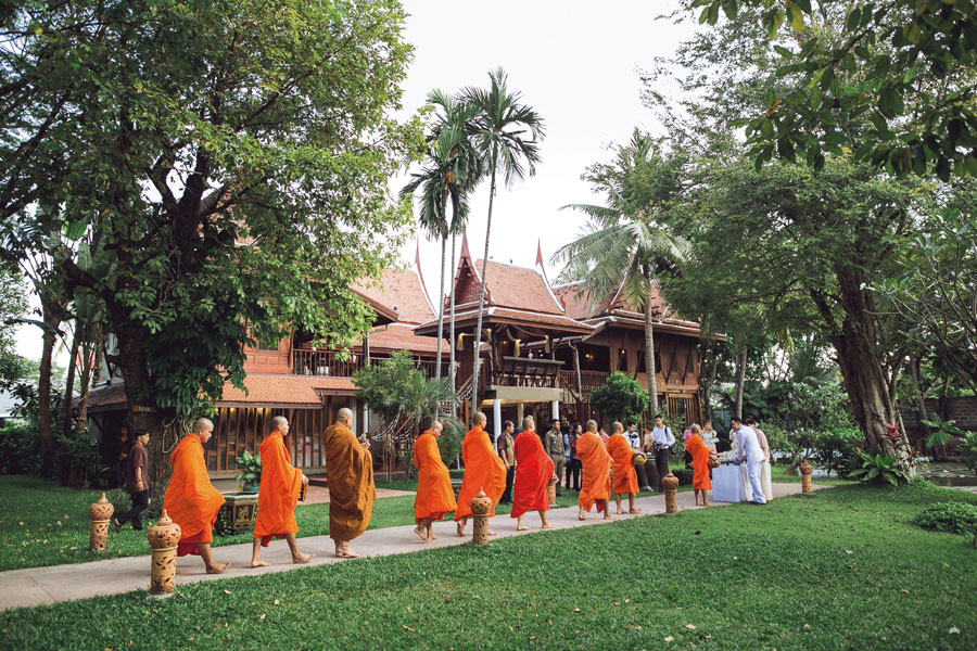 จุดเริ่มต้นความรักของคุณตั๋งและคุณป่านคือเพื่อนที่ชอบในเรื่องเดียวกัน คอยให้คำปรึกษา ให้กำลังใจกันและกัน จนกลายเป็นคนรู้ใจที่ขาดกันไม่ได้ เมื่อตัดสินใจว่าจะใช้ชีวิตคู่ร่วมกันทั้งสองจึงหาฤกษ์วันมงคลและเริ่มเตรียมงานแต่งงานทันที คุณป่านเล่าว่า สิ่งแรกที่หาคือ สถานที่ ซึ่งใช้เวลาหาอยู่นานเพราะอยากได้สถานที่ซึ่งดูดีในงบประมาณที่ไม่แพงเกินไป จนได้จุดลงตัวสำหรับพิธีแต่งงานตามธรรมเนียมไทยที่เรือนทับขวัญ รีสอร์ท แอนด์ สปา ซึ่งโดดเด่นด้วยเรือนไทยสไตล์โบราณและสระบัวสีชมพูงามสะพรั่งบริเวณด้านหน้า ช่วยส่งให้ภาพถ่ายงานแต่งงานดูหรูหราแบบไทยแท้ๆ