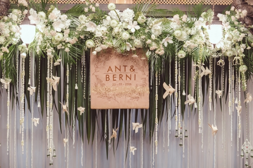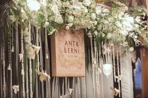 และเมื่อพูดถึงธีม รวมถึงการตกแต่งงานแต่งงาน คุณแอ๊นท์เล่าให้ แพรว เวดดิ้ง ฟังว่า เมื่อได้โจทย์ชัดเจนว่าอยากได้งานแต่งงานไทยที่สามารถโชว์ความเป็นไทยให้ชาวต่างชาติเห็นได้ จึงได้ปรึกษากับ Purepada Wedding Planner แพลนเนอร์มืออาชีพที่คุณแอ๊นท์เลือกใช้ และได้ออกมาเป็นการตกแต่งงานจากของพื้นบ้านไทยที่น่ารักอย่าง ปลาตะเพียนสาน ใบจาก ผสมผสานการใช้ดอกไม้ไทยอย่าง ดอกรัก และดอกมะลิ