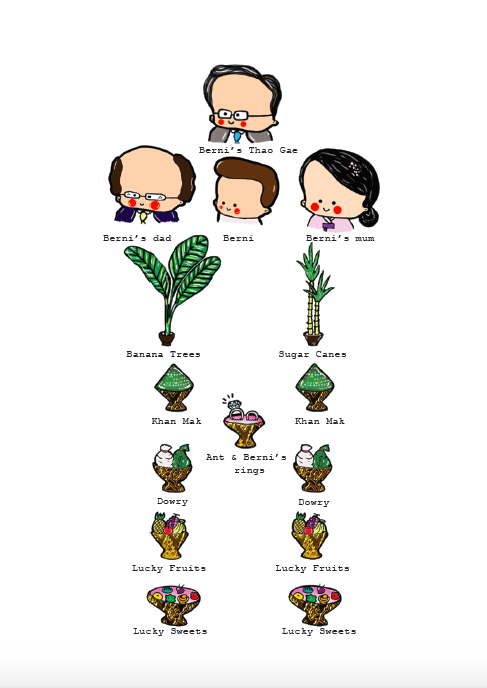 เริ่มจากเมื่อคุณแอ๊นท์และคุณเบอร์นี่เซตวันสำคัญได้แล้ว ทางคุณแอ๊นท์ทราบมาว่าคุณพ่อคุณแม่ ญาติๆ และเพื่อนๆของคุณเบอร์นี่จะเดินทางมาร่วมงานแต่งงานที่จัดขึ้นที่เมืองไทยประมาณร้อยกว่าคน และทุกคนมาอยู่กันยาวแบบ long stay เพื่อมาท่องเที่ยวด้วย คุณแอ๊นท์จึงตัดสินใจที่จะจัดพิธีแต่งงานแบบไทยแท้ๆ ที่มีดีเทลวัฒนธรรมอันเป็นเอกลักษณ์ เพื่อจะได้ใช้โอกาสนี้ในการเผยแผ่วัฒนธรรมอันดีงามของไทย