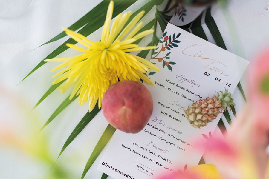 แม้ทั้งคู่จะมีเวลาในการเตรียมงานเพียง 3 เดือนครึ่ง แต่เพราะลงมือทำอย่างเป็นขั้นเป็นตอน เริ่มต้นจากการวางไทม์ไลน์ให้ชัดเจน จึงทำให้ทุกขั้นตอนผ่านไปด้วยดี สร้างความประทับใจให้กับแขกผู้ร่วมงาน และทำให้วันพิเศษของทั้งคู่ออกมาได้ตามภาพที่ฝันไว้