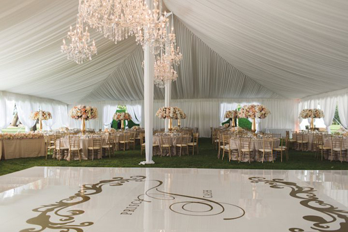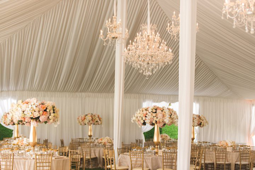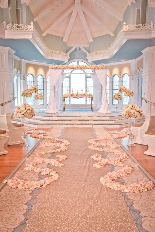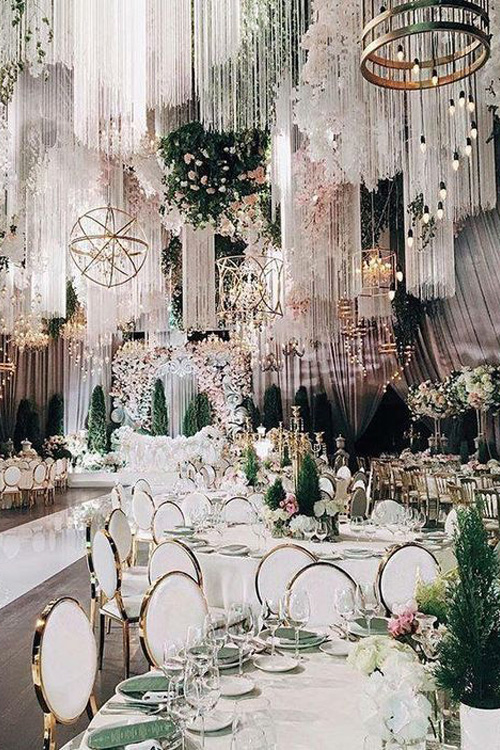 ต่อด้วยการตกแต่งงานโดยภาพรวมที่ต้องทุ่มค่ะ บอกเลยว่างานนี้ต้องทุ่ม ไม่ว่าจะเป็นดอกไม้สุดอลังการ เก้าอี้สุดหรูหรือแม้แต่เรื่องการจัดไฟที่ต้องให้อารมณ์โรแมนติคสุดๆ โดยเลือกโทนสีนุ่มละมุ่นแต่ดูหรูหราอย่าสีชมพูอ่อน พีช ส้มอ่อน ครีม และใส่ความวิบวับกลิตเตอร์ลงไป แบบนี้ก็ทำให้ภาพรวมทั้งงานหรูหราและเหมือนหลุดเข้าไปในโลกเทพนิยายได้อย่างสมจริงมากขึ้น