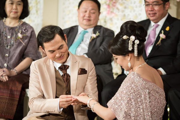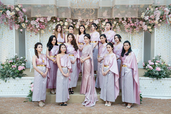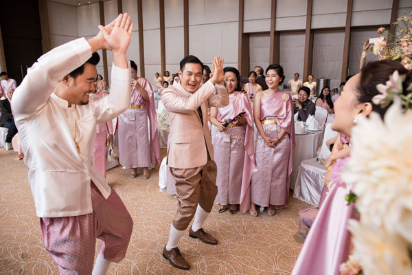 ความโชคดีของทั้งคู่ที่แม้มีเวลาในการเตรียมงานแต่งงานน้อยแต่ก็สามารถจัดงานได้อย่างใจคือ เพื่อนสนิทที่เพิ่งแต่งงานไปได้ส่งต่อข้อมูลที่เคยใช้จัดงานให้ ทั้งคู่จึงมาประยุกต์ใช้กับงานแต่งของตัวเอง เพียงแค่อ่านรีวิวเพิ่มเติม ตั้งโจทย์ที่ต้องการให้ชัดเจนและมองหาเวดดิ้งแพลนเนอร์มาเป็นผู้ช่วย เพียงเท่านี้ก็ได้งานแต่งที่อยากได้ในเวลาสั้นๆ นอกจากในช่วงของการเตรียมงานที่ไหลลื่นแล้ว ในวันงานแต่งงาน ทั้งคู่ยังได้รับการเติมเต็มภาพฝันจากแขกที่มาร่วมยินดีอีกด้วย เพราะทุกคนให้ความร่วมมือในการแต่งตัวตามธีมสีชมพูมาเกือบร้อยเปอร์เซนต์ ทำให้ภาพบรรยากาศอบอวลไปด้วยความหวานของสีสันที่อยากได้คู่ไปกับดอกไม้สวยๆ ในบรรยากาศไทยๆ