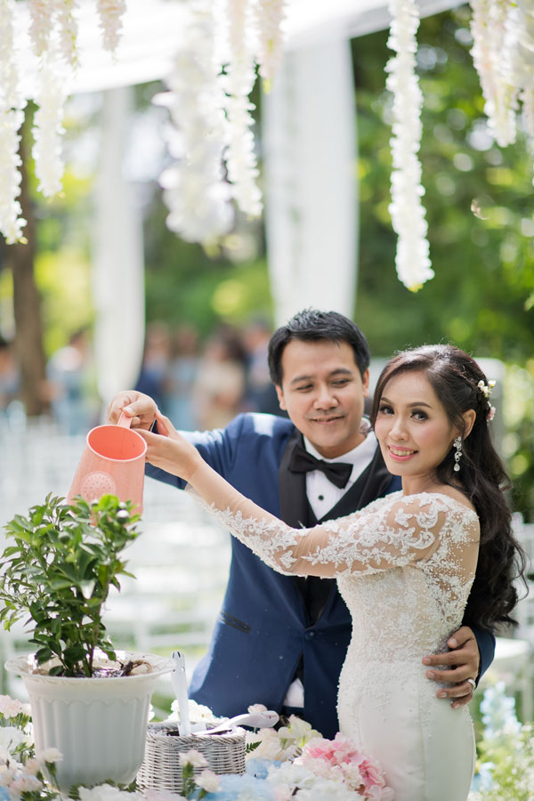 คุณแอ๊ะและคุณอาร์ตเริ่มต้นเตรียมงานประมาณ 1 ปีล่วงหน้า โดยเลือกใช้บริการ As Your Mind Wedding Planner และให้โจทย์กับทางทีมงานว่าต้องการให้เป็นงานแต่งงานในสวนที่น่ารัก อบอุ่น เวดดิ้งแพลนเนอร์จึงเริ่มดีไซน์งานแต่งงานโดยใช้สีพาสเทลเป็นหลักเพื่อให้ผสมกลมกลืนกับบรรยากาศสวนสีเขียวขจี รวมทั้งจัดสรรงานดอกไม้และพร็อปส์ประกอบในงานที่เข้าชุดกันอย่างประณีตส่งให้งานยิ่งดูน่ารักและเปี่ยมด้วยดีเทล