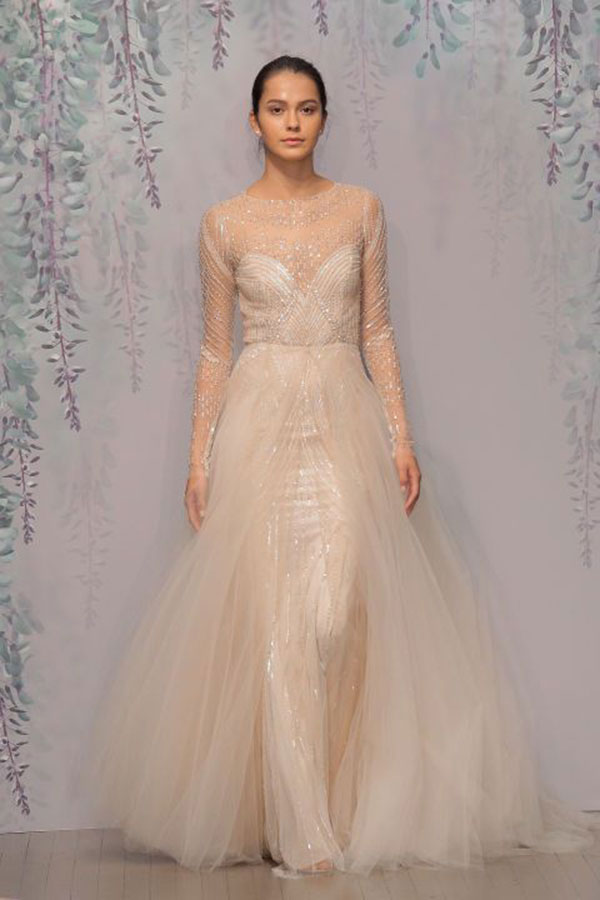 เดี๋ยวนี้ดีไซน์เนอร์แข่งกันปักประดับแน่น เยอะ มีมิติ และละเอียดเวอร์กันจนน่าตะลึง ที่น่าทึ่งคือการปักบนผ้าโปร่งให้เหมือนลวดลายลอยตัวอยู่บนผิว และหลายแบรนด์มีการแทรกความระยิบวิบวับเข้ามาด้วย ซึ่งก็ถือเป็นอีกหนึ่งลุคที่เหมาะกับว่าที่เจ้าสาวที่ไม่ต้องการอะไรแบบเดิมๆ รักในความแปลกใหม่ และอยากมีสไตล์ของตัวเอง
