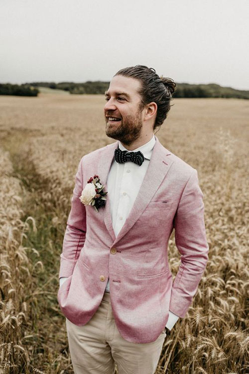 หากเจ้าบ่าวอยากสร้างคาแรคเตอร์ให้กับตัวเอง การเลือกแจ็กเกตสูทที่มีสีสัน หรือมีลวดลาย ก็ช่วยให้ว่าที่เจ้าบ่าวดูโดดเด่นท่ามกลางแขกคนอื่นๆ ที่สวมสูทหรือทักซิโดสีดำกันแทบทุกคน แถมถ่ายภาพออกมาแล้วยังดูไร้ที่ติอีกด้วย