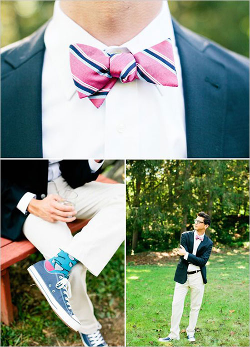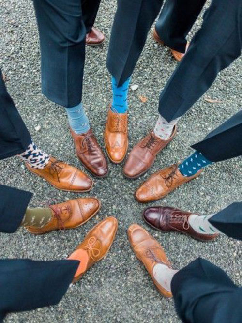 เจ้าบ่าวเด็กแนวสายฮิปต้องไม่พลาดที่จะทำตามใจตัวเอง ซึ่งถุงเท้าถือเป็นแอคเซสซอรี่อีกชิ้นที่จะช่วยเผยตัวตนและสไตล์ของว่าที่เจ้าบ่าวได้เป็นอย่างดี แถมงานนี้เจ้าบ่าวยังสามารถชวนแก๊งเพื่อนเจ้าบ่าวมาสนุกกับลุคนี้ได้ เช่น การเลือกลายถุงเท้าที่เหมือนกัน หรือเลือกลวดลายต่างๆ ที่บ่งบอกถึงเอกลักษณ์ของแก๊งคุณก็ได้ แล้วคุณจะได้กรุ๊ปช็อตดีๆ จากแอคเซสซอรี่ชิ้นนี้แน่นอน