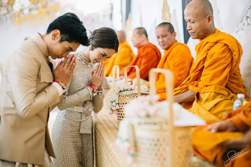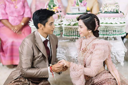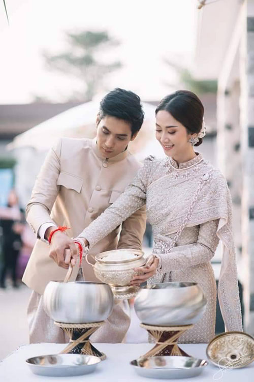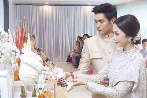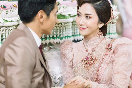 ส่องชุดแต่งงานไทย ยุ้ย จีรนันท์ และธัญญ์ ธนากร ในพิธีแต่งงานไทยสุดชื่นมื่น