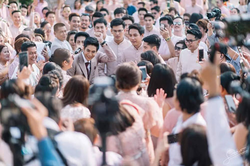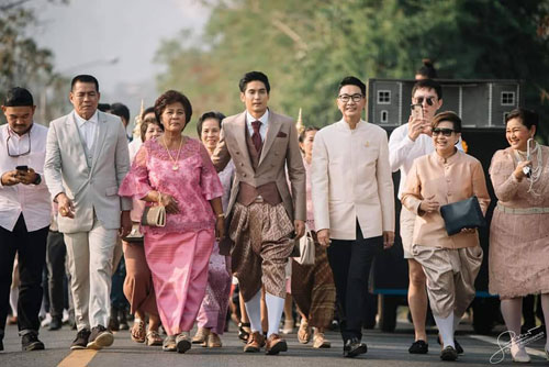 เจ้าบ่าวเจ้าสาวสวยหล่อขนาดนี้ แก๊งเพื่อนเจ้าบ่าวเจ้าสาวในวงการบันเทิงก็ไม่ขอน้อยหน้าเพราะยกทัพกันมาในชุดไทยอันสวยงามเช่นเดียวกัน