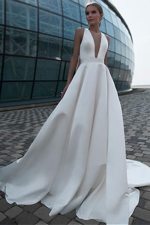 แน่นอนว่าการแต่งงานเป็นวันสำคัญที่เกิดขึ้นเพียงครั้งเดียวในชีวิต เพราะฉะนั้นการเลือกชุดแต่งงานที่ต้องใส่เพียงแค่ครั้งเดียวในชีวิตนั้น แถมบางคนก็ใส่แค่ชุดเดียวไปอีก จึงเป็นสิ่งที่ว่าที่เจ้าสาวมักจะให้ความสำคัญกับมันมากเป็นพิเศษ ก็แหม คงไม่มีใครที่เมื่อย้อนกลับมาดูภาพถ่ายในงานแต่งงานของตัวเองแล้วมานั่งเสียใจว่า ฉันไม่น่าเลือกชุดนี้เลย จริงไหมคะ เพราะฉะนั้นดีไซน์ ชุดแต่งงานเรียบง่าย จึงอาจจะเป็นอะไรที่ตอบโจทย์ความอมตะแบบฆ่าไม่ตายสำหรับลุคเจ้าสาวได้ดีที่สุด