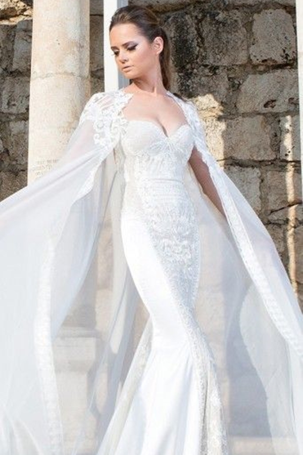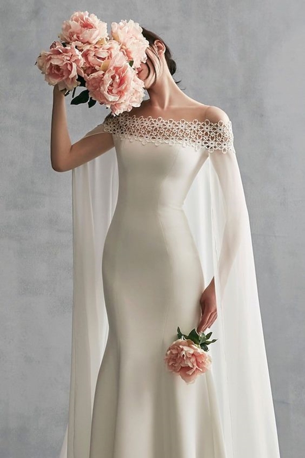 ชุดแต่งงานสไตล์เข้ารูปไม่เน้นความฟูฟ่อง จะเข้ากันได้ดีมากกับชุดแต่งงานที่มีผ้าคลุมหลัง หรือที่เรียกกันว่า เครปหลัง โดยชุดแต่งงานแบบนี้ชวนให้นึกไปถึง ชุดแต่งงานในเทพนิยาย สไตล์เจ้าหญิงผู้เรืองอำนาจ มีทั้งความสง่างามแต่แฝงไว้ด้วยความเซ็กซี่ยิ่งบวกกับชุดทรงเมอร์เมดเข้ารูปด้วยแล้ว ยิ่งสวยเซ็กซี่ขยี้ใจเชียวละ