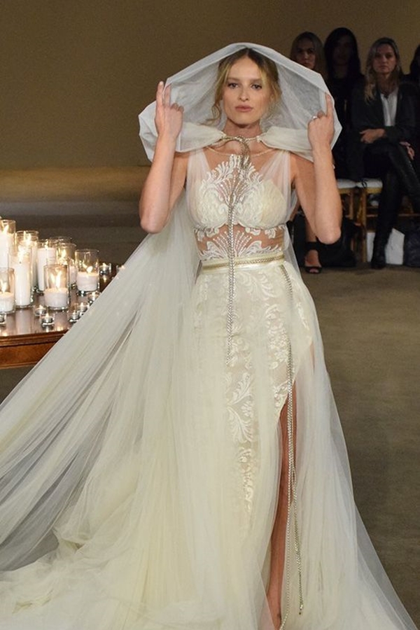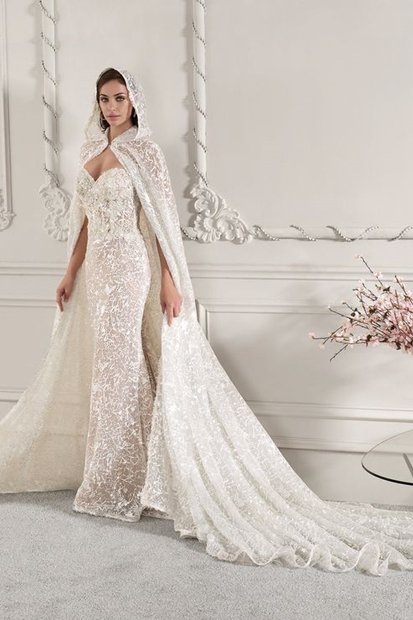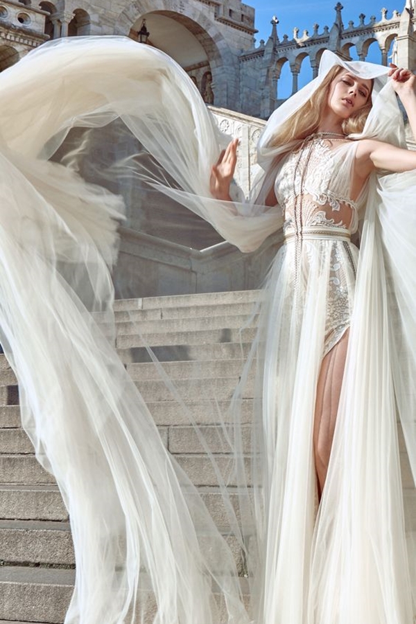 เป็นชุดแต่งงานในเทพนิยายที่ให้ลุคสวยแปลกตา เป็นได้ทั้งชุดเจ้าสาวในฤดูหนาวสไตล์ Winter is coming หรือจะเป็นเจ้าสาวมาดมั่นพร้อมเดินทางแบบสวยเริ่ดบนหลังม้าก็ได้เหมือนกัน หรือบ่าวสาวคู่ไหนอยากใส่กิมมิคให้งานด้วยการเปลี่ยนจากรถแต่งงาน เป็นขี่ม้าเท่ๆ ไปด้วยกันล่ะก็ บอกเลยว่า โรแมนติคและเท่มาก กอไก่ล้านตัว