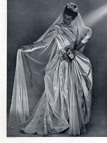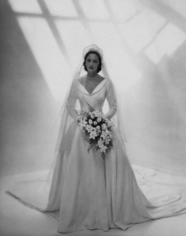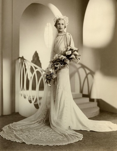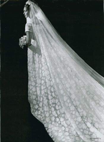 ชุดแต่งงานที่เคยสั้นกลับมายาวอีกครั้ง และเปลี่ยนจากทรงตรงเป็นเข้ารูปช่วงเอว แล้วก็ปล่อยยาว การประดับเลื่อมวิบวับหายไปจากชุดแต่งงาน แต่มีความมันวาวในเนื้อผ้า และเพิ่มลูกเล่นให้กับชุดด้วยกระดุมปั๊มเม็ดเล็กๆ เรียงแถวยาว ดูผู้ดีสุดๆ ส่วนเครื่องหัวก็มีการเปลี่ยนแปลงจากเวลเป็นหมวกและที่คาดผม ในขณะที่หน้าผมก็อลังการมากขึ้น เพราะเป็นยุคที่ขนตาปลอมได้รับความนิยม คิ้วก็ยังบาง แต่ที่เพิ่มเติมคือความหน้าขาว และปากแดงกล่ำ