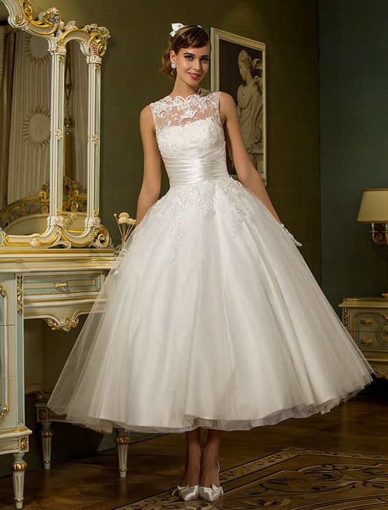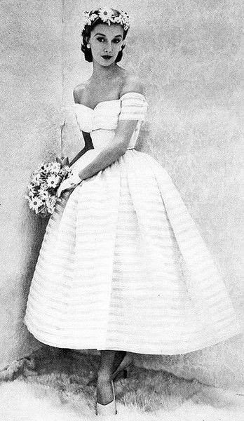 ไอคอนแห่งยุคนี้คือ มาริลีน มอนโร และ อลิซาเบธ เทย์เลอร์ เพราะฉะนั้นถ้านึกอะไรไม่ออกให้นึกหน้าของทั้ง 2 คนนี้เข้าไว้ ชุดแต่งงานในช่วงนี้มีความน่ารักคิกขุอยู่เบาๆ ตรงอกเสื้อรูปหัวใจ ที่ชายกระโปรงมีความสุ่มน้อยๆ ฟูหน่อยๆ กับความยาวประมาณหน้าแข้ง พร้อมๆ กับที่เข้ารูปช่วงเอว ชนิดที่ว่าถึงไม่มีเอว ก็เอวคอดขึ้นมาได้ ผ้าลูกไม้กลับมาได้รับความนิยมอีกครั้ง ถุงมือกลายเป็นไอเท็มที่ขาดไม่ได้ ในขณะที่การแต่งงานก็เน้นความสดใสของวัยสาว แก้มปลั่งๆ กับปากแดงๆ คิ้วเข้มๆ อย่างที่บอกว่ามอริลีน มอนโรไง