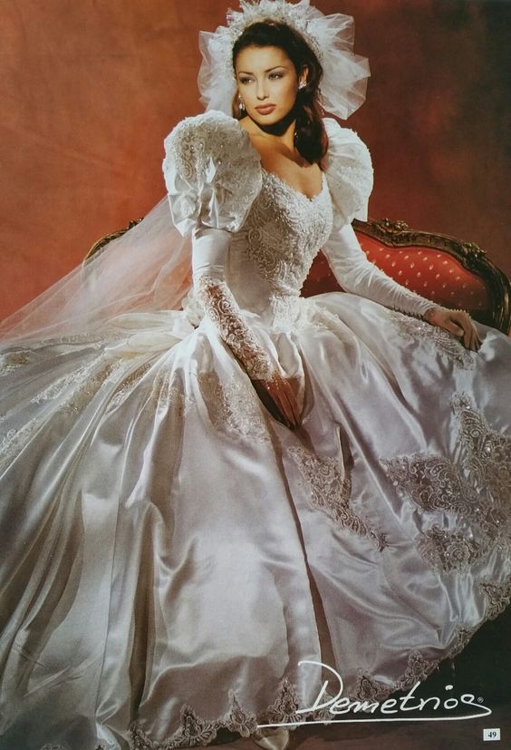 ไอคอนชุดแต่งงานของสาวๆ ในยุคนี้จะเป็นใครไปไม่ได้ ถ้าไม่ใช่ เจ้าหญิงไดอาน่า กับชุดแต่งงานสุดหรูอลังการ ความสุ่ม ความฟู่ฟ่อง ทรงปริ้นเซสต้องมา แขนทรงตุ๊กตาที่เพิ่มความพองมากกว่าปกติ เรียกได้ว่านึกอะไรไม่ออกก็ชุดทรงเจ้าหญิงไดอาน่าเลยนั่นหล่ะ ในขณะที่สีของชุดก็จะมีหลายเฉดมากขึ้น คือยังเป็นสีขาวแต่เป็นขาวที่หลากหลาย ไปจนเกือบถึงติดเหลืองนิดๆ สำหรับการแต่งหน้าจะเน้นที่ตาสีสว่างๆ พร้อมกับลิปสีอ่อนอย่างชมพู
