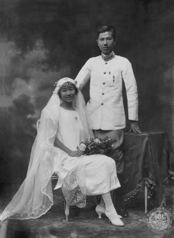 นอกจากแฟชั่นเสื้อผ้าในชีวิตประจำวันแล้ว การผสมผสานของแฟชั่นสองซีกโลกยังหมายรวมถึงชุดแต่งงาน ซึ่งในเมืองไทยเองเพิ่งจะได้เห็นสตรีไทยสวมชุดขาวแบบยุโรปก็ในสมัยรัชกาลที่ 6 เช่นภาพถ่ายในสตูดิโอของพระยาสุรินทรเสวี และคุณหญิงสุรินทรเสวี ภาพนี้เจ้าสาวสวมชุดผ้าไหมสีขาวสั้นขึ้นมาถึงหัวเข่า พร้อมผ้าคลุมผมลูกไม้ยาวละพื้น และถือช่อดอกไม้เข้าฉากอย่างเจ้าสาวฟากยุโรป