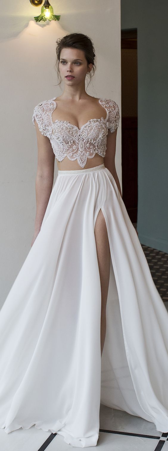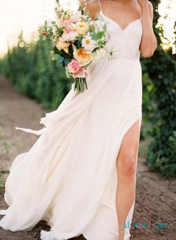 WE Recommend : ชุดแต่งงานทรงเอไลน์ สีอ๊อฟไวท์ ด้านบนผ่าลึกถึงช่วงเอว ประดับผ้าลูกไม้ที่ขอบชุดทั้งสองข้าง ตัวกระโปรงใช้ผ้าโปร่งซีทรูช่วงต้นขาลงมาให้เห็นขาเรียวยาวเซ็กซี่อยู่เบาๆ