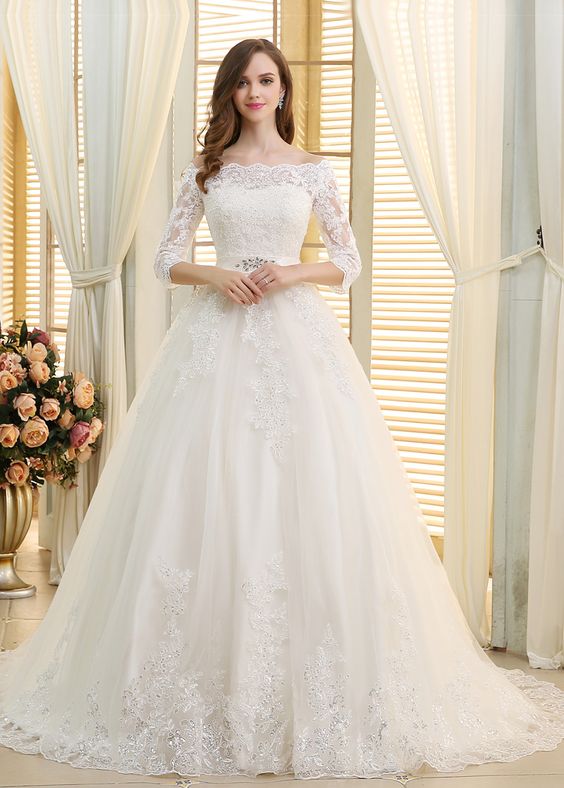 WE Recommend : ชุดแต่งงานทรงปริ้นเซส ชุดเปิดไหลาประดับลูกไม้ทั้งตั้ง