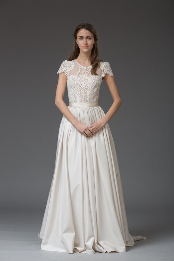 WE Recommend : ชุดแต่งงานทรงเอไลน์ ทอลายตั้งในเนื้อผ้า คลุมทับด้วยผ้าลูกไม้ตั้งแต่ช่วงไหล่จนถึงสะโพก
