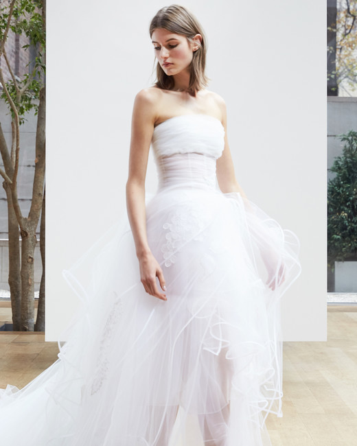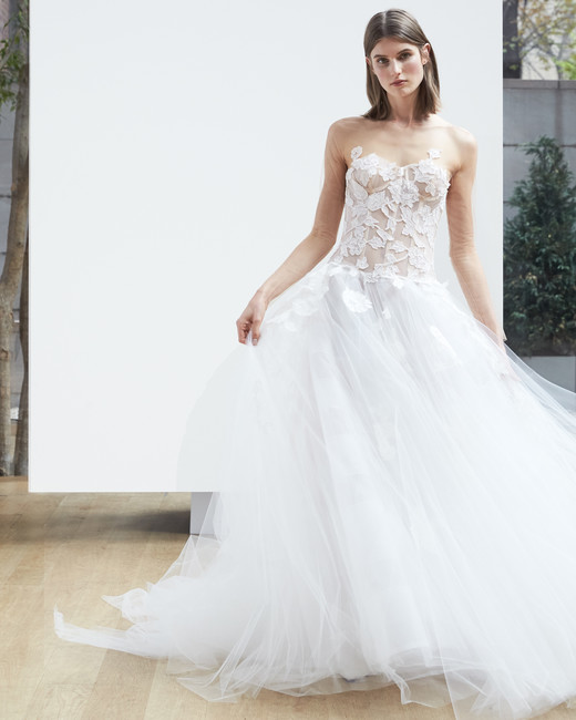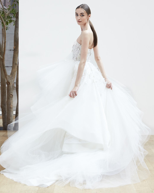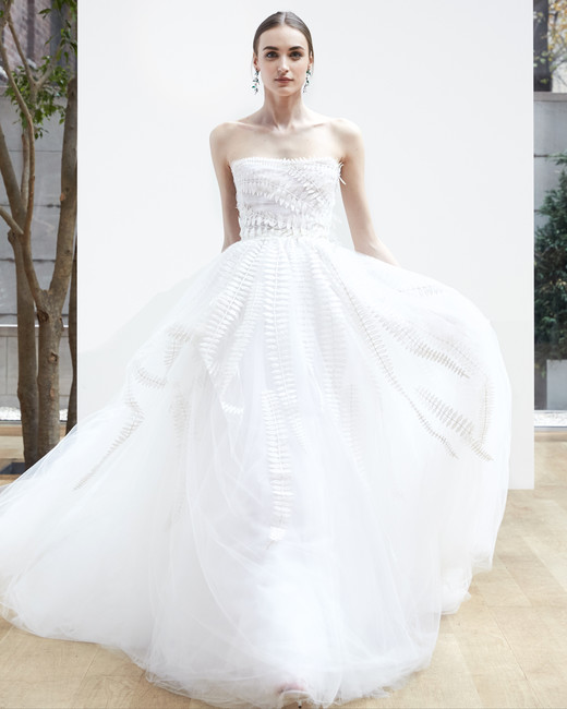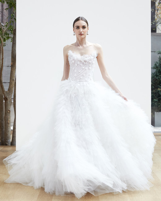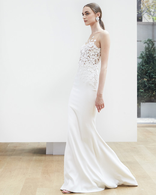 สำหรับ Spring 2018 ชุดแต่งงานออกแบบให้คลาสสิกด้วยงานปักดอกไม้สมัยใหม่จับคู่กับชุดสูทและกางเกงสุดเท่ ให้เจ้าสาวได้คล่องตัวแต่ยังคงความหวานแบบคนมีความรัก