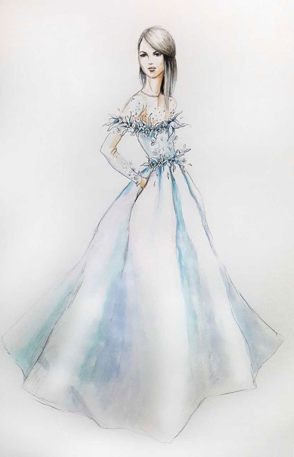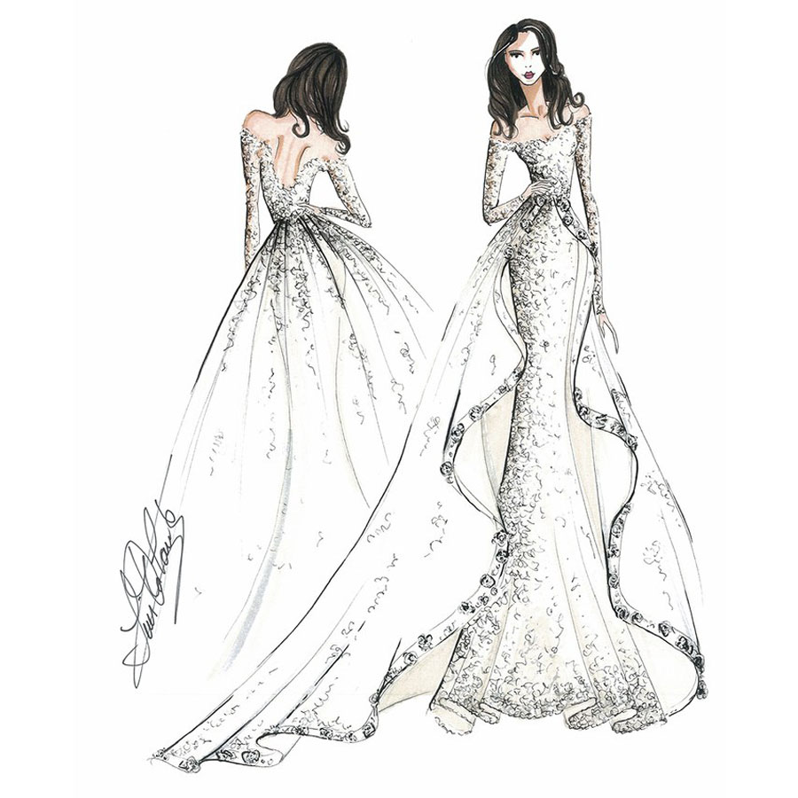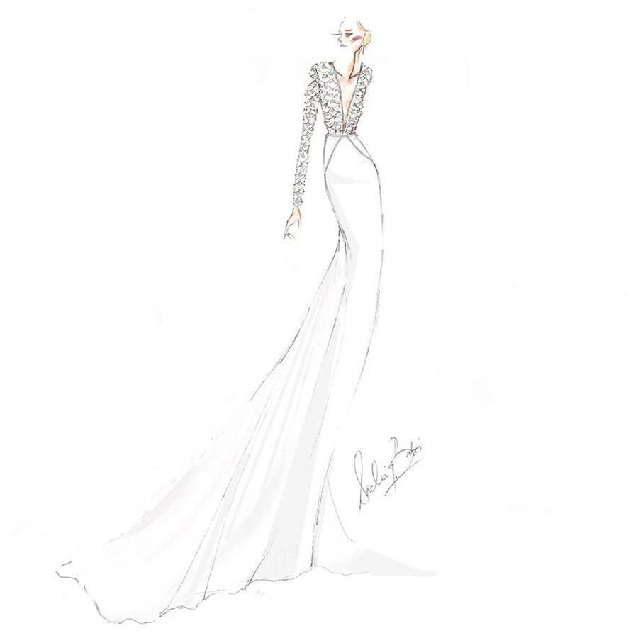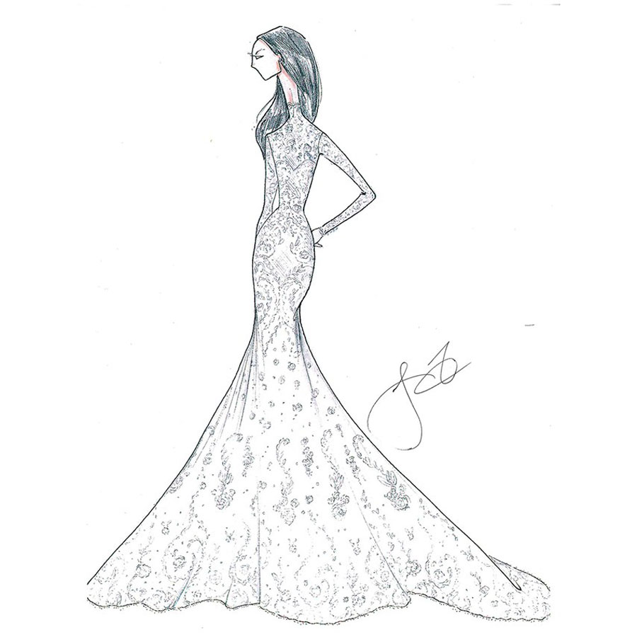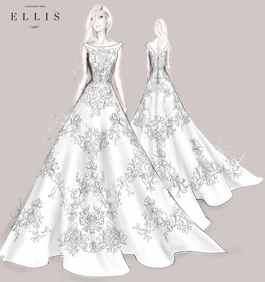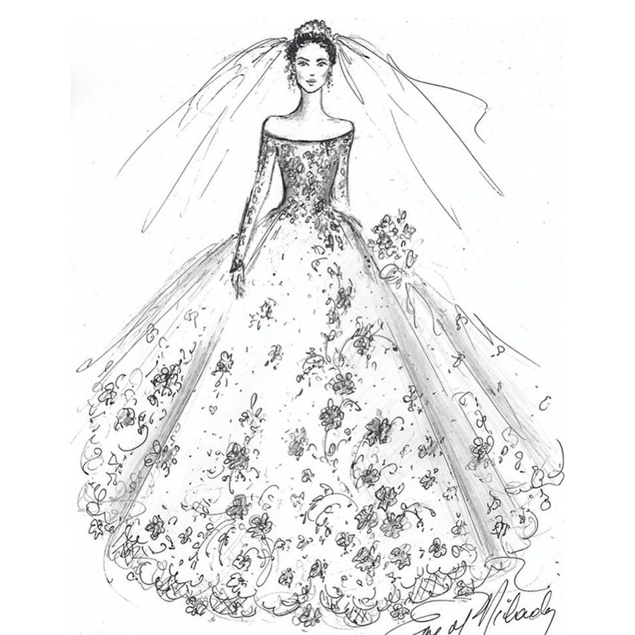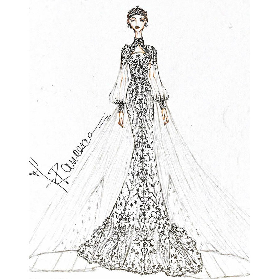 “ฉันพยายามสร้างสรรค์บางอย่างที่ดูสง่างามแต่จะไม่เปิดเผยมันในตอนนี้ ซึ่งแน่นอนว่ามันมีรายละเอียดที่ลึกซึ้งเพื่อเน้นร่างกายของผู้หญิง เป็นชุดที่สง่างามสำหรับหญิงสาว และเหมาะสมกับเจ้าสาวที่เป็นเจ้าหญิง”