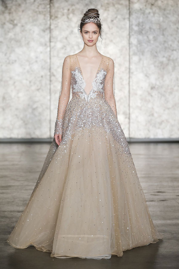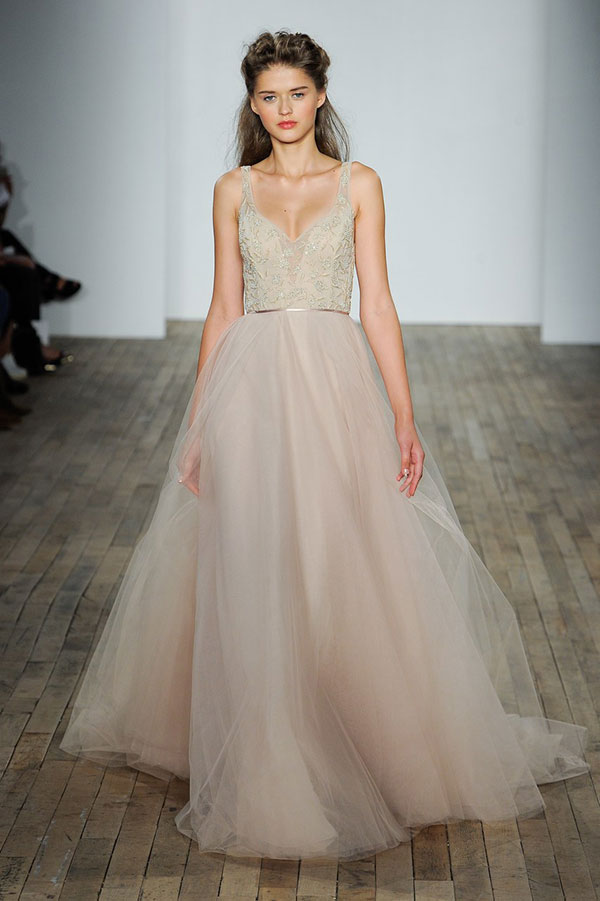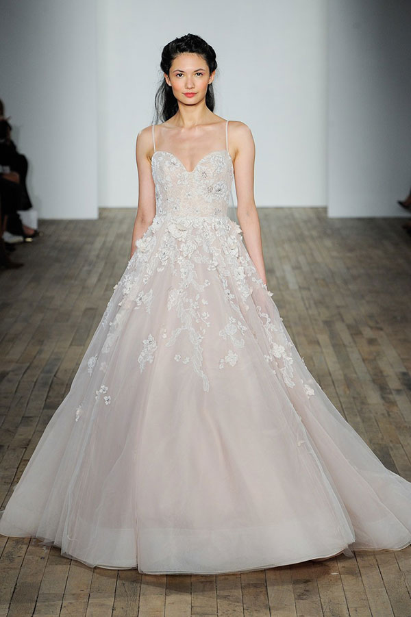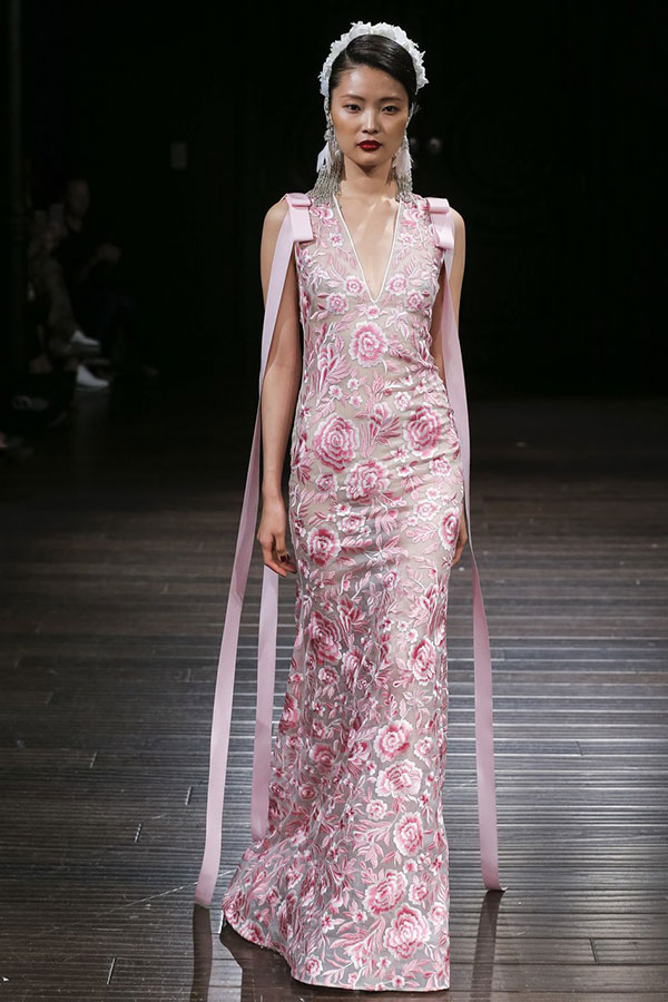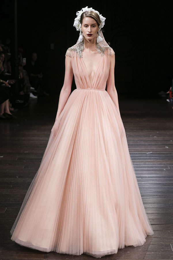 ความมีสีสันกลับมาอีกครั้งบนชุดแต่งงาน ซึ่งปีนี้เป็นเฉดสีที่ดูดีสมกับเป็นเจ้าสาวสุดๆ อย่างเฉดสีชมพูและเฉดสีนู้ด ไล่ไปตั้งแต่เฉดสีชมพูสดใสไปจนถึงสีพีชสุดหวานจากแบรนด์ Naeem Khan และเฉดสีนู้ดที่ดูนุ่มนวลสุดๆ จากแบรนด์ Elie Saab, Alexandra Grecco, Inbal Dror และแบรนด์อื่นๆ อีกมากมาย และนี่เป็นอีกหนึ่งเทรนด์ของชุดแต่งงานที่ให้อารมณ์สวยหวานโรแมนติกสุดๆ ไปเลย