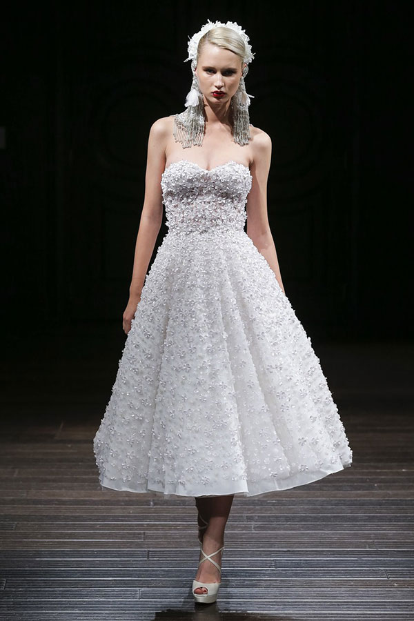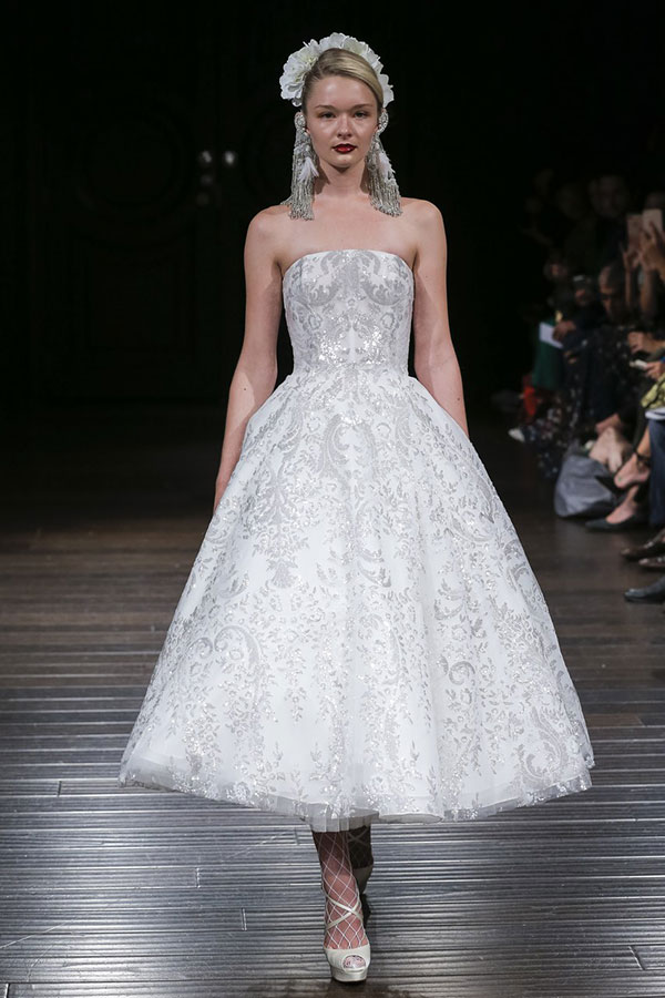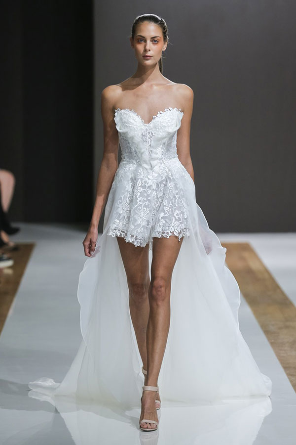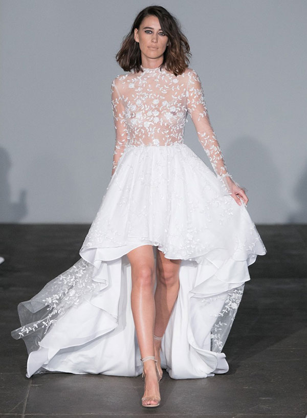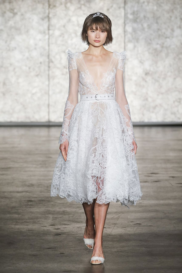 สำหรับเจ้าสาวในปี 2018 งานเผยเรียวขาสุดแซ่บต้องมาค่ะ! เหล่ากระโปรงแบบ mid-length พาเหรดกันมาบนรันเวย์เป็นว่าเล่น รวมไปถึงแฟชั่นชุดแต่งงานแบบ mini-dress หรือแบบสั้นก็มากับเขาด้วย ไม่ว่าจะเป็นสไตล์มินิสเกิร์ต, เอวสูงแบบเจ้าสายแฟชั่นนิสต้า หรือแบบหน้าสั้นหลังยาว ที่เด็ดไปกว่านั้นแบบกางเกงขาสั้นก็มานะจ๊ะ เราเชื่อว่าเจ้าสาวในปีหน้าจะต้องเลือกหนึ่งในความสั้นเหล่านี้ไปใส่แน่นอน