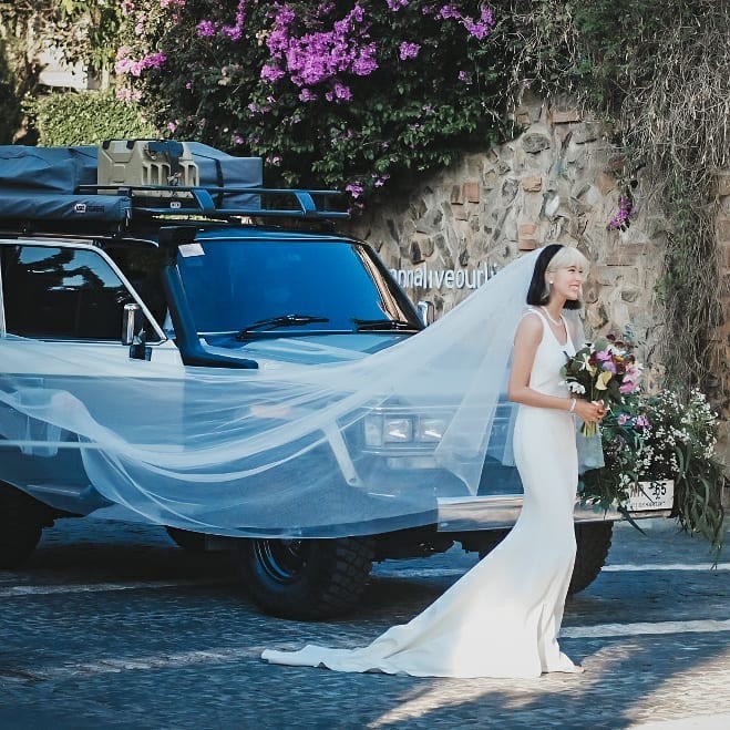 อีกหนึ่งไอเดียเจ๋งๆ ของคู่รักนักเดินทางคือการเปิดท้ายรถจี๊บแล้วใช้เป็นแบ็กดรอปสำหรับถ่ายรูปกับเพื่อนพ้อง น้อง พี่ในวงการบันเทิงที่ตบเท้าเข้าร่วมแสดงความยินดีกับทั้งคู่ ปิดท้ายช่วงเย็นด้วยการที่เจ้าบ่าวและเจ้าสาวขับรถจี๊บออกจากบริเวณจัดงาน เปรียบเสมือนกับการเริ่มต้นชีวิตคู่ สมกับเป็นไอเดียที่สะท้อนตัวตน ความสัมพันธ์ที่น่ารัก และความชอบในการออกเดินทางท่องเที่ยวของบ่าวสาวได้อย่างดี