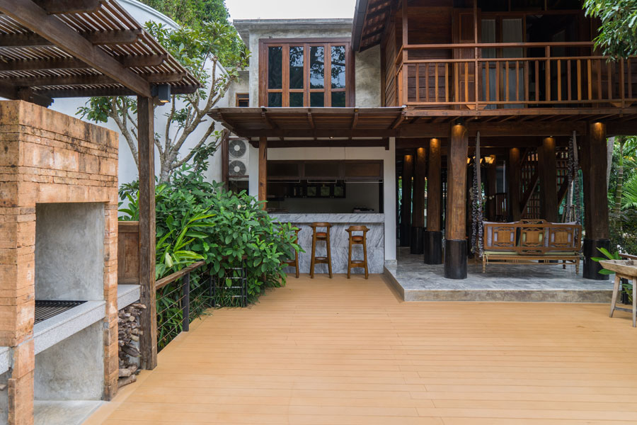 บ้านพักสไตล์หลองข้าว 2 ชั้น ขนาด 274 ตารางเมตร ประกอบด้วยห้องนั่งเล่นและบาร์ ชั้นบนเป็นห้องนอนแบบเตียงเดี่ยว 1 ห้อง และแบบเตียงคู่อีก 1 ห้อง พร้อมลานส่วนตัวแบบใกล้ชิดธรรมชาติที่ด้านนอก เหมาะสำหรับทริปสังสรรค์ของครอบครัว หรือจะชวนแก๊งเพื่อนสนิทมาปาร์ตี้สละโสดแบบชิลๆ ก็ยังได้