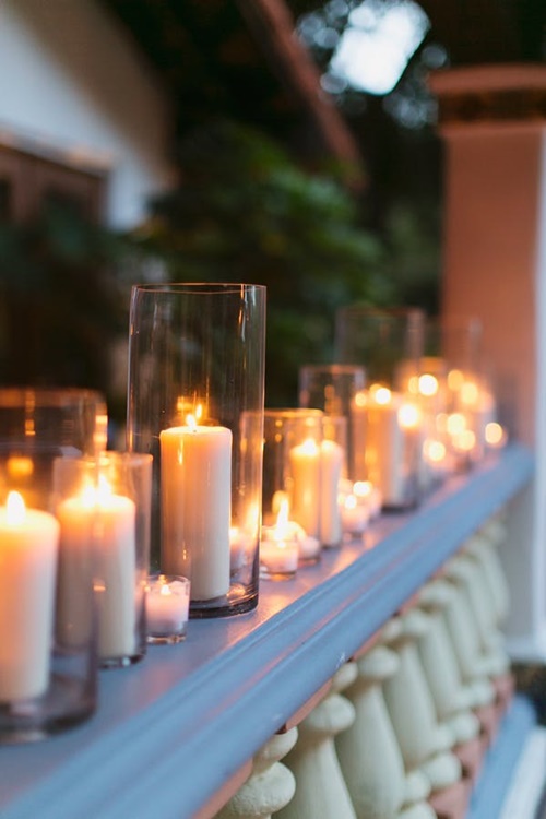 เทียนบนโต๊ะและระเบียง