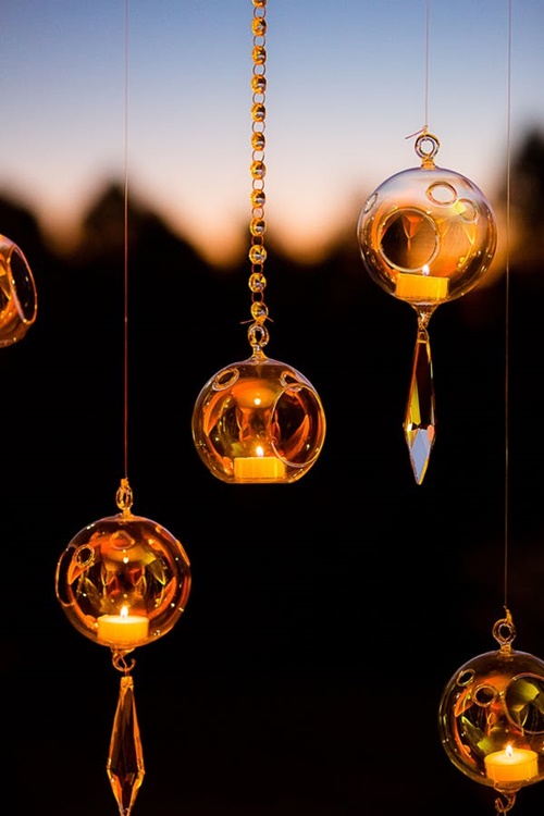 สร้างบรรยากาศกับแสงไฟบางเบา เหมือนล่องลอยในฝันกับการประดับเทียนห้อยเหมือนโคมไฟดีไซน์สวยงาม เพิ่มความหรูหราให้งานสวยมีระดับ
