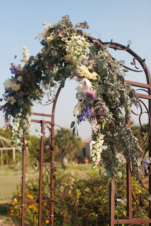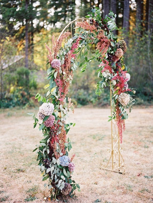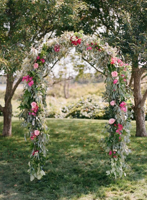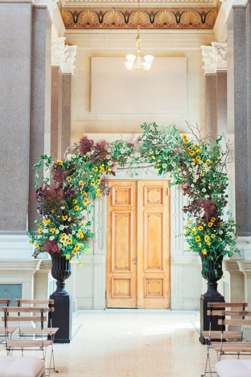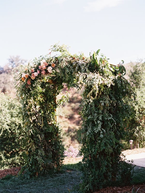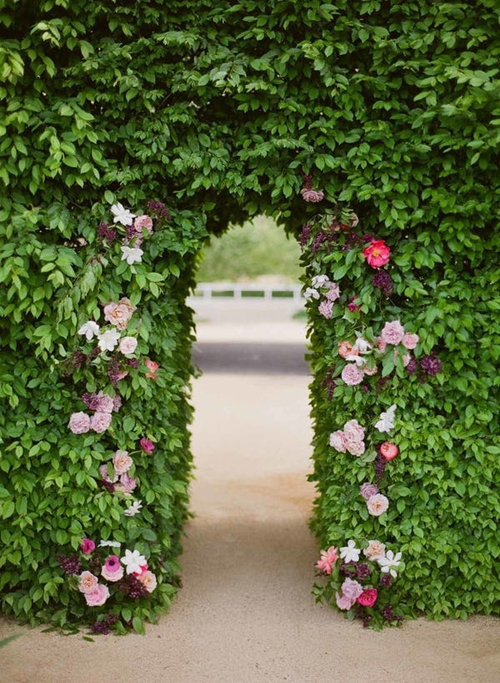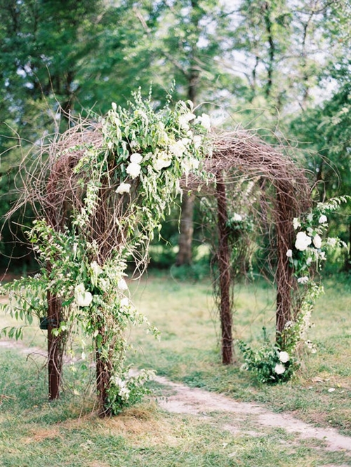 เพียงใช้ต้นไม้สองต้นที่มีกิ่งก้านยาว โดยจัดตกแต่ง ดัด และมัดกิ่งไม้ทั้งสองฝั่งให้โค้งเข้าหากัน และเลือกสีของดอกไม้ที่ใช้ตกแต่งให้เข้ากับสีธีมงานหรือสถานที่ เพียงเท่านี้ก็ได้ซุ้มประตูที่ดูเป็นธรรมชาติแล้ว