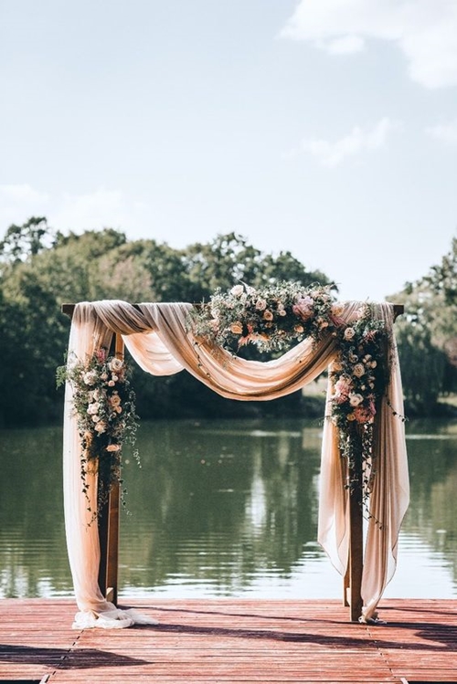 ความพลิ้วไหวจากผ้าจะช่วยทำให้งานดูน่าค้นหาและมีเสน่ห์ ประดับดอกไม้สีใกล้เคียงกับผ้าเพื่อเพิ่มความอ่อนหวาน แถมยังช่วยให้งานดูโรแมนติกขึ้นอีกด้วย