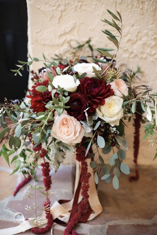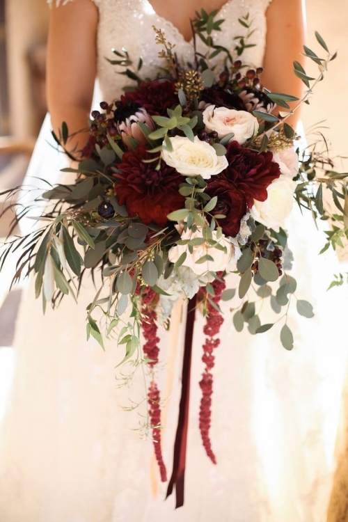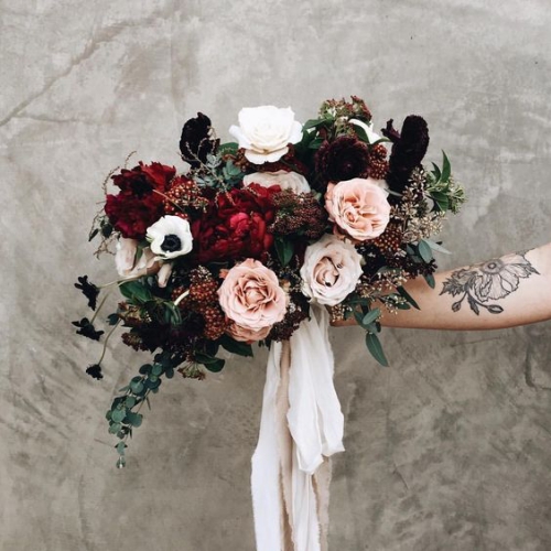 ค้นหาไอเดีย ช่อดอกไม้สีเบอร์กันดี สีที่ฮิตในช่วงครึ่งปีหลังและช่วยเพิ่มลุคน่าค้นหาให้เจ้าสาว