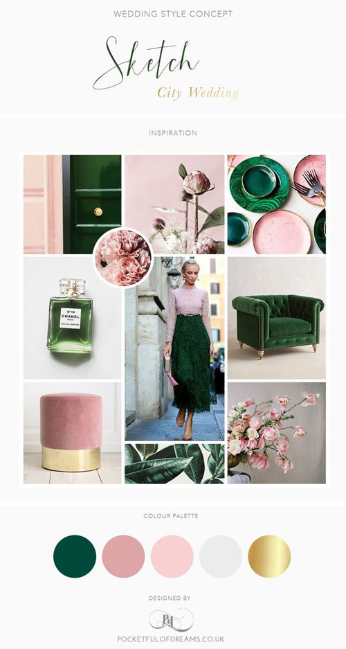 เนื่องจากรายละเอียดเหล่านี้เริ่มเป็นรูปเป็นร่างขึ้น อันดับแรกอาจจะเริ่มจากการดึงสีหลักออกมาจากภาพก่อน เช่น อาจจะลองนำภาพไปเปรียบเทียบกับแพนโทน จากนั้นก็เริ่มดูอิลิเม้นต์อื่นๆ อย่าง พร็อพส์ รูปแบบการตกแต่ง และรูปแบบชุดแต่งงานของบ่าวสาว