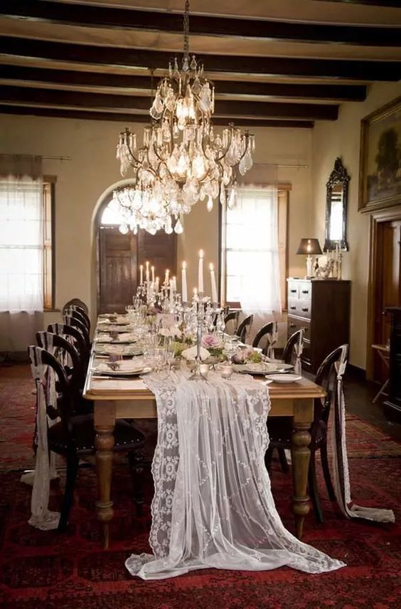 การตกแต่งงานในธีมนี้จะเน้นที่ความเรียบหรู และอ่อนหวาน ข้าวของเครื่องใช้จะเน้นที่เครื่องแก้ว เครื่องเงินมากกว่าโลหะอื่นๆ สถานที่หากเป็นโครงสร้างไม้ หรือหลังคาทรงโค้ง ทรงโดมจะเข้ากับธีมมาก แล้วตกแต่งบนโต๊ะด้วยผ้าลูกไม้ ก็จะยิ่งเข้ากับธีมสุดๆ