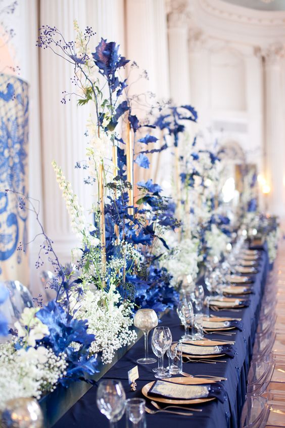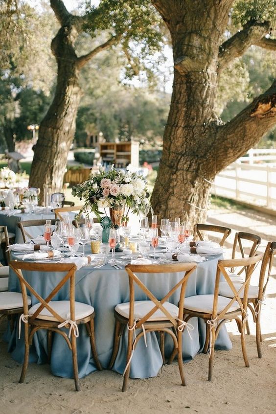 เป็นสีที่แสดงถึงความมั่นคง อำนาจ และก่อให้เกิดความสงบสุข เพราะเป็นสีแห่งธรรมชาติ แถมเมื่อก่อนยังเชื่อว่าสีฟ้าจะช่วยปัดเป่าความโชคร้ายและปกป้องเจ้าสาวได้ด้วย จึงเป็นที่มาของ Something Blue ที่เจ้าสาวฝั่งตะวันตกเขาพกกัน ซึ่งงานแต่งโทนสีฟ้าและสีน้ำเงินจะเป็นงานที่จัดให้ดูชิล หรือเรียบหรูทางการก็ได้ทั้งนั้นเลย