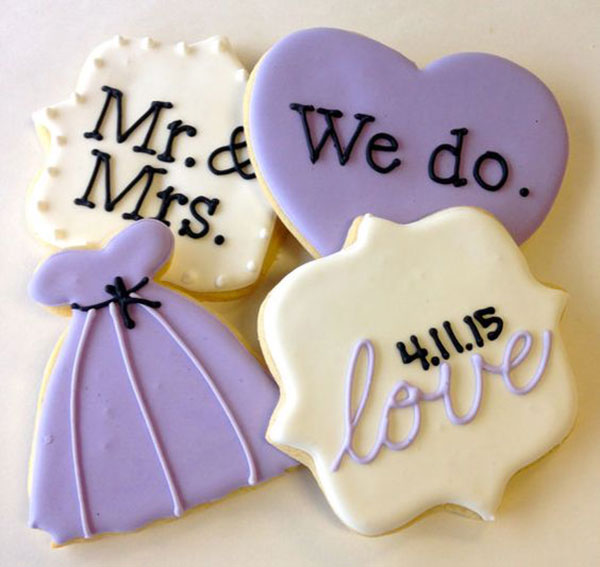 คุ้กกี้แสดงออกความเป็นบ่าวสาวที่น่ารักสุดๆ ไปเลย ใส่ซองหรือกล่องน่ารักๆ ยิ่งเสริมความคิ้วท์เข้าไปอีก แถมยังแฝงความเป็นนัยว่า ฉันและเธอจะอยู่คู่กันตลอดไป