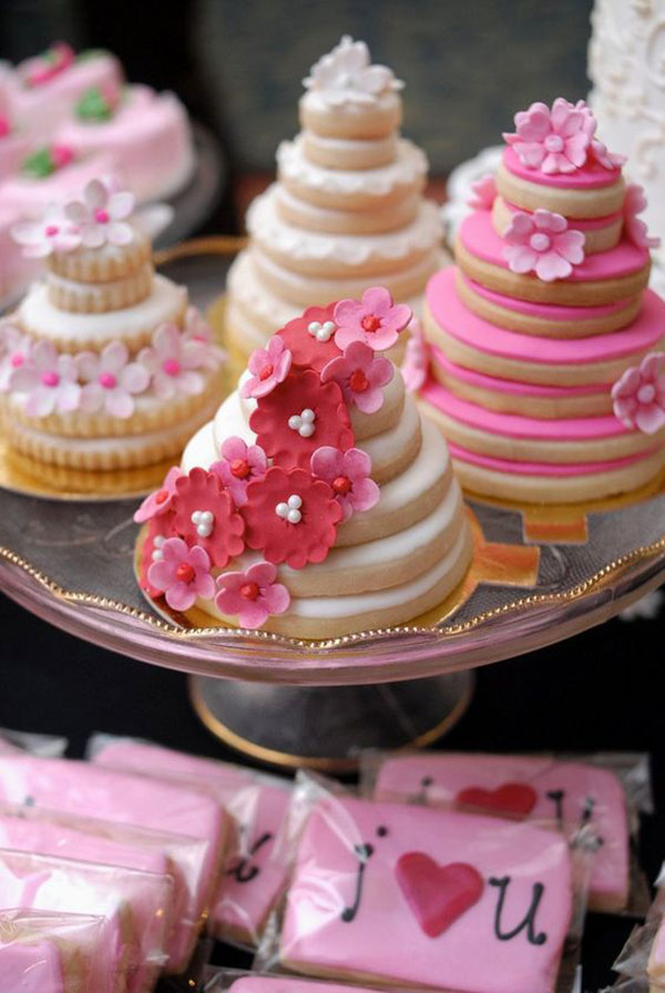 คุ้กกี้รูปหัวใจ ที่สื่อถึงความรักและการแต่งงานได้เป็นอย่างดี งานนี้ไม่ได้จำกัดว่าความรักต้องเป็นสีชมพูอย่างเดียวนะคะ จะเลือกเป็นสีอื่นที่บ่าวสาวชอบ หรือจะเป็นสีเดียวกับธีมงานก็ยังได้