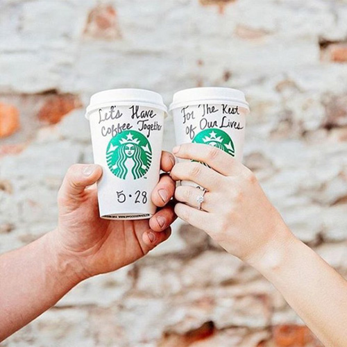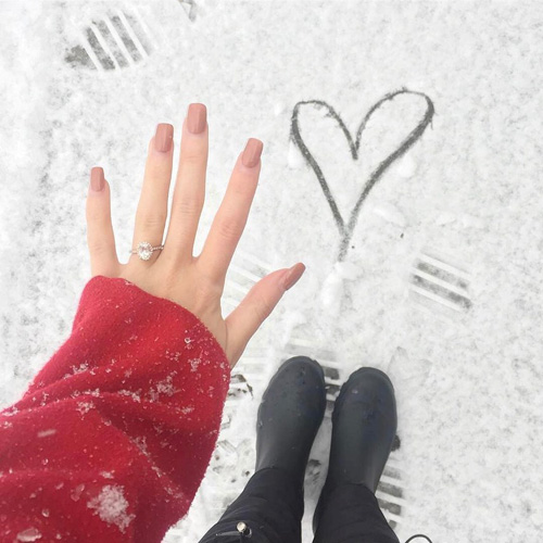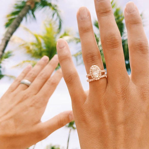ประคองใบหน้าว่าที่สามีแล้วแคปชั่นเก๋ๆ ว่า “นี่แหละค่ะคนที่ซื้อแหวนให้”