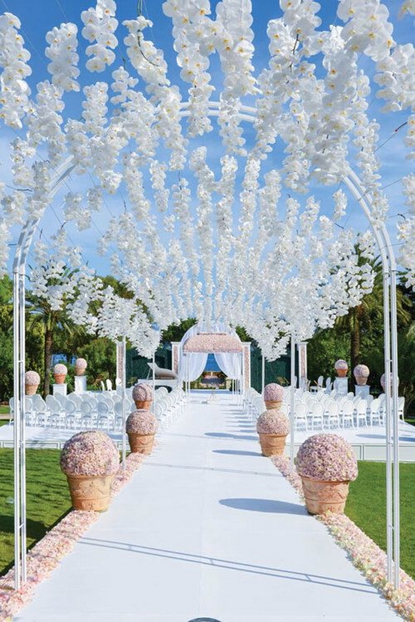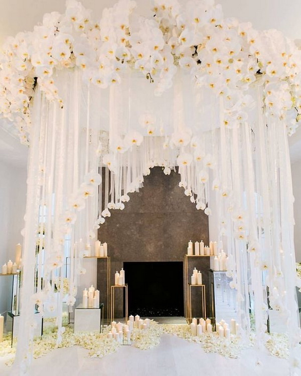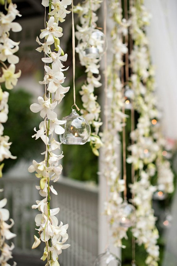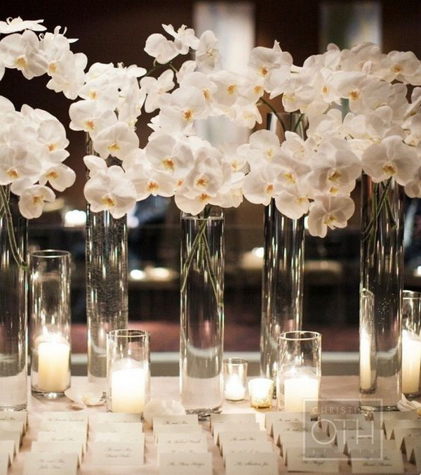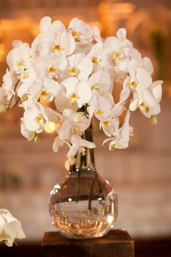 อ้อ…ดอกกล้วยไม้บางชนิดยังให้กลิ่นหอมอ่อนๆ ทำให้แขกภายในงานรู้สึกผ่อนคลายอีกด้วยนะคะ ซึ่งดอกกล้วยไม้ที่นิยมใช้มักจะเป็นสีขาว ชมพู หรือม่วง ลองไปดูกันเลยดีกว่าค่ะว่าไอเดียนี้จะอลังการเลิศหรูขนาดไหน