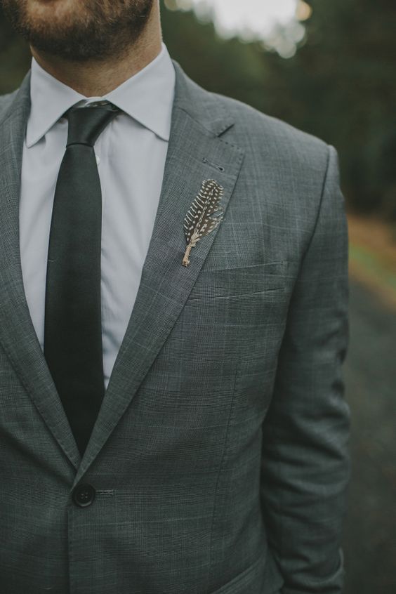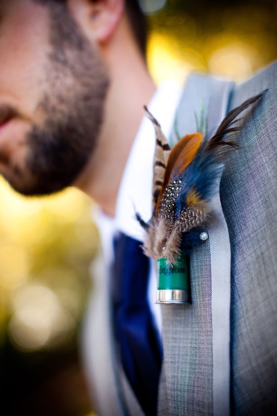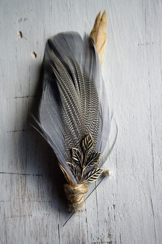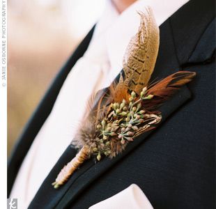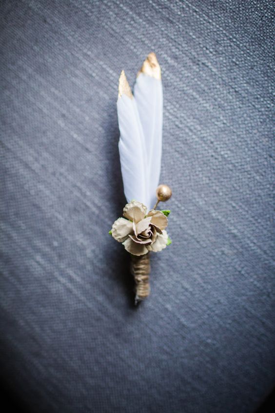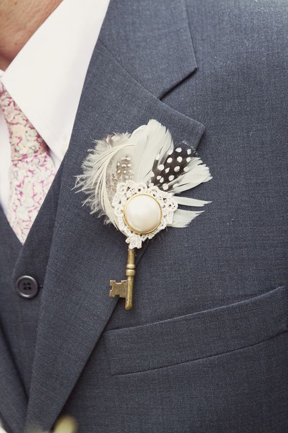 บูโทเนียร์ คือช่อดอกไม้จิ๋วติดอกแน่นๆ ของคุณเจ้าบ่าว แต่บางทีดอกไม้ก็ไม่ค่อยเข้ากับมาดแมนแอนด์แฮนด์ซัมสักเท่าไหร่ เราจึงขอเสนอไอเดียเปลี่ยนดอกไม้หวานๆ ให้เป็นขนนกที่ดูอบอุ่นแทน แล้วอาจเพิ่มกิมมิคเท่ๆ อย่างฟันเฟืองโลหะ หรือใบไม้ใบหญ้าก็ดูเข้าที เหมาะกับมาดเข้มๆ ของคุณเจ้าบ่าว