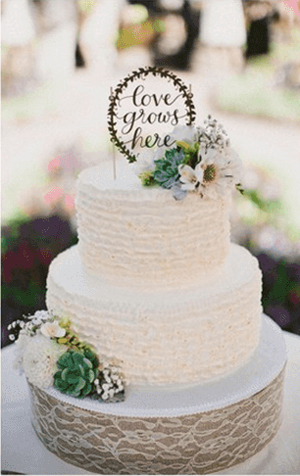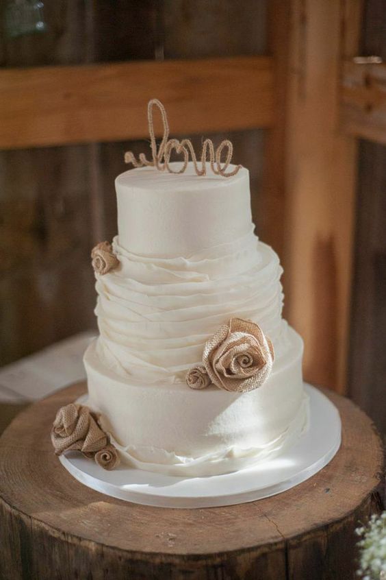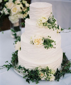 เค้กแต่งงานที่เคยหรูหราด้วยน้ำตาลปั้น ก็เปลี่ยนเป็นเค้กเรียบๆ ที่เก๋ด้วยรอยปาดครีมแบบดิบๆ แล้วประดับด้วยมบใบไม้สีเขียวสด เป็นการเพิ่มกิมมิค หรืออาจะใช้เป็นเชือกป่านก็ทำให้ดูมีสีสันมากยิ่งขึ้น