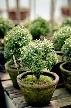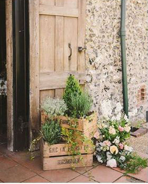 การตกแต่งงานในสไตล์อิงแอบแนบธรรมชาติแบบนี้ ของเลือกใช้ก็จะเป็นในโทนเขียว ขาว และน้ำตาลล้อไปกับธีมสี อย่างการใช้ไม้กระดานมาทำเป็นป้ายหน้าทางเข้างาน และถ้าให้อบอุ่นสุดๆ ก็เลือกของใช้จากในบ้านมาเป็นพร็อพตกแต่งงาน ส่วนของชำร่วยอาจให้แขกหยิบต้นไม้ในกระถางดินเผาที่ประดับอยู่ในงานกลับไปเป็นของชำร่วย