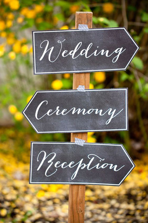 Chalkboard ระหว่างทางเดินเข้างาน จริงๆ แล้วป้ายบอกทางไปสู่งานสำหรับบ่าวสาวที่จะงานแต่งงานบนพื้นที่ใหญ่ก็สำคัญนะคะ การเลือกใช้กระดานดำเขียนชอล์คมาตั้งเป็นป้ายบอกทางเป็นอะไรที่ทำไม่ยาก แถมยังเข้ากันได้ดีกับสนามหญ้าสีเขียวๆ อีกด้วย นี่ถ้าตกแต่งเพิ่มสักหน่อยโดยการวางตั้งไว้แบบไล่ระดับยินดี เพราะบางทีอาจมีแขกเข้ามาถ่ายรูปเป็นที่ระลึกได้เหมือนกัน