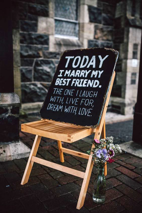 Chalkboard เผยใจ บอกเลยว่าถ้าอยากแสดงออกซึ่งความรักที่มีกับเจ้าสาวหรือแขกในงาน ก็แค่หากระดานดำดีไซน์กรอบสวยๆ มาตั้งไว้มุมเด่นๆ ในงานแล้วเลือกคำขอบคุณจากใจใส่ลงไป เทคนิกคือตัวหนังสือที่เขียนต้องชัดเจนและสวยงามดึงดูดด้วยนะ คนอ่านจะได้ยิ้มปลื้มสุดๆ