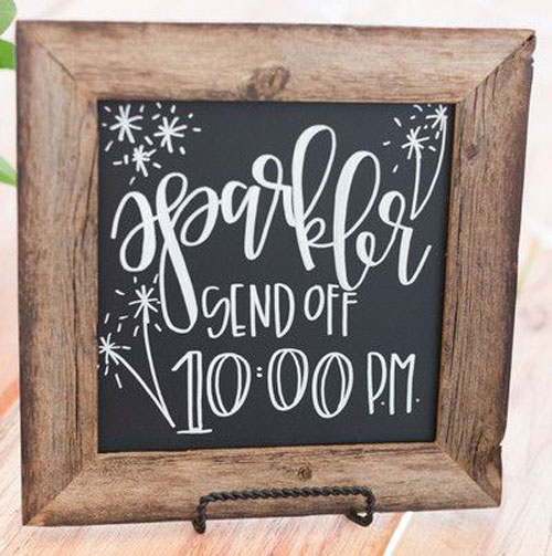 มาแรงแบบไม่เห็นแววว่าแรงจะตก กับการเลือกใช้วัสดุง่ายๆ อย่าง กระดานดำ ที่คุ้นเคยคู่กับแท่งชอล์กสารพัดสีเหมือนครูนักเรียนสมัยก่อน เพราะเสน่ห์ของ กระดานดำกับชอล์ก คือการที่บ่าวสาวสามารถวาดลวดลาย เขียนเนื้อหา ได้แบบลบๆ เติมๆ ภายใต้ต้นทุนไม่กี่บาท ยิ่งถ้ามีเพื่อนฝูงที่มีความสามารถทางศิลปะด้วยแล้วละก็ ลวดลายและตัวอักษรที่บรรจงสร้างสรรค์บนกระดานดำจะสวยงามเป็นเอกลักษณ์เฉพาะตัวไม่ซ้ำใคร