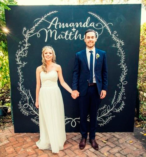 Chalkboard Backdrop เริ่มไอเดียแรกกับการเปิดตัวบ่าวสาวสวยหล่อหน้าฉากถ่ายภาพที่นำกระดานไม้มาทาสีดำตั้งไว้ตามขนาดที่ต้องการ และบรรจงใช้ชอล์คสีเขียนรายละเอียดวาดลวดลายลงไป อ้อ…อย่าลืมเว้นพื้นที่วางบนบอร์ดให้บ่าวได้ได้ยืนแบบเด่นๆ ด้วยล่ะ