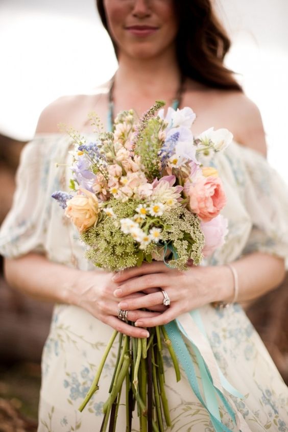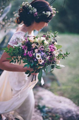 เปลี่ยนช่อบูเกต์จากดอกไม้ธรรมดา เป็นดอกไม้ป่า และไม้เลื้อย เช่น ดอกโบตั๋น ดอกสายน้ำผึ้ง ดอกแพชชั่น ไวน์ ดอกสวีทพี ดอกเคล็มแม็ททิส ก็ดูสวยงามและเข้าได้กับทุกธีมโดยเฉพาะกรีนนารี่ที่กำลังมาแรงในปีนี้