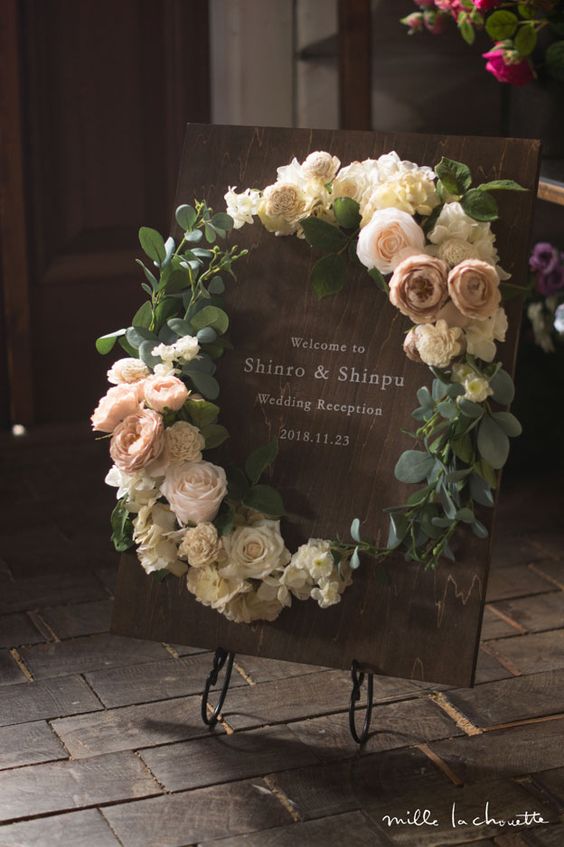 สร้างความประทับใจตั้งแต่ทางเข้างานให้กับแขกที่มาร่วมงาน ด้วยการ์แลนด์ ดอกไม้ทรงกลมติดข้อความต้อนรับ และลงชื่อบ่าวสาวรับรองว่าแขกต้องปลื้มจนยิ้มไม่หุบ